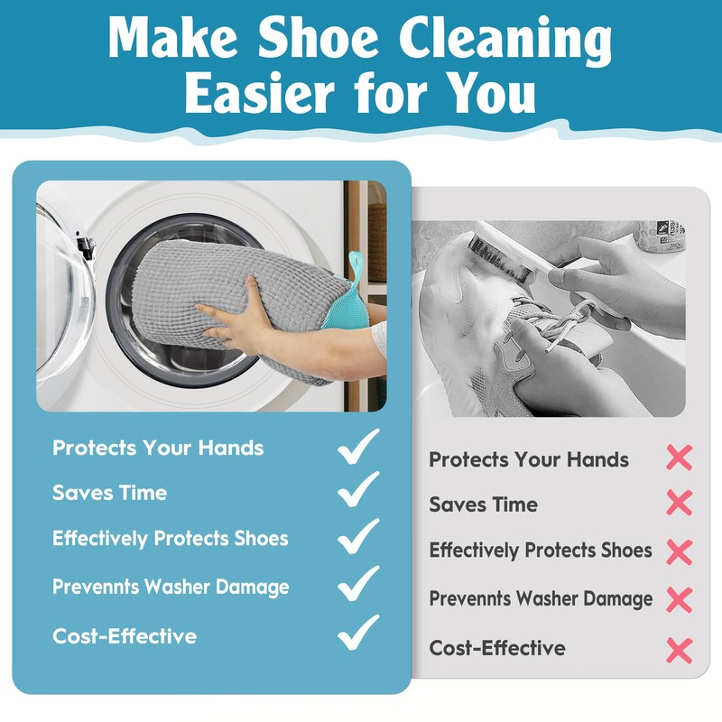- ✔【Versatile】The perfect helper for clean shoes. Reusable shoe wash bag for washing machine and laundry room, ideal solution for gentle cleaning of all types of shoes, indispensable accessories for well-groomed footwear