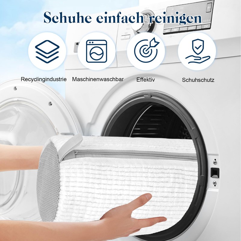 • Easy to use: just put detergent on the shoes, put them in the shoe wash bag, close the zipper and put it directly into the washing machine. With this shoe washing machine, you no longer have to brush your shoes manually.