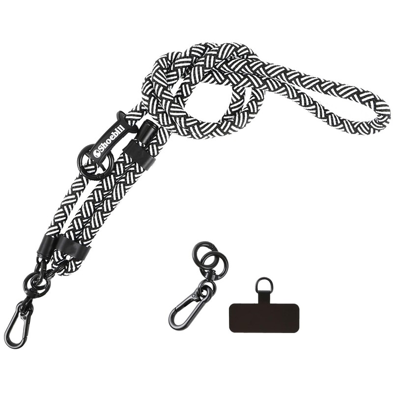Shoebill Smartphone Shoulder Strap, Shoulder Strap, Thick, Adjustable Length, Black and White Herringbone