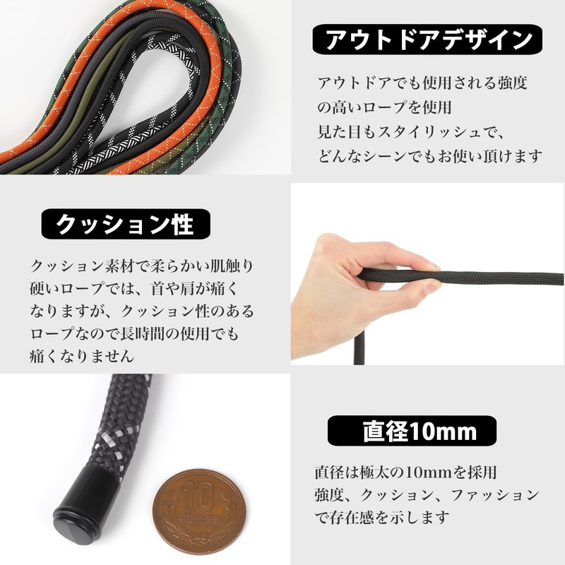 - Cushioning: The cushioning material is soft to the touch. Hard rope can cause neck and shoulder pain but the cushioned rope won't hurt even after long time use