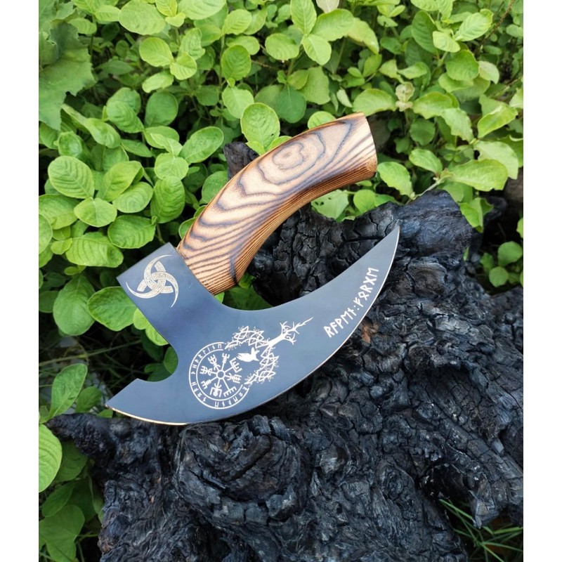 - Toppings We use Method of Etching metal in Salt water to Put drawing on the Axe head so it will Last for life time.