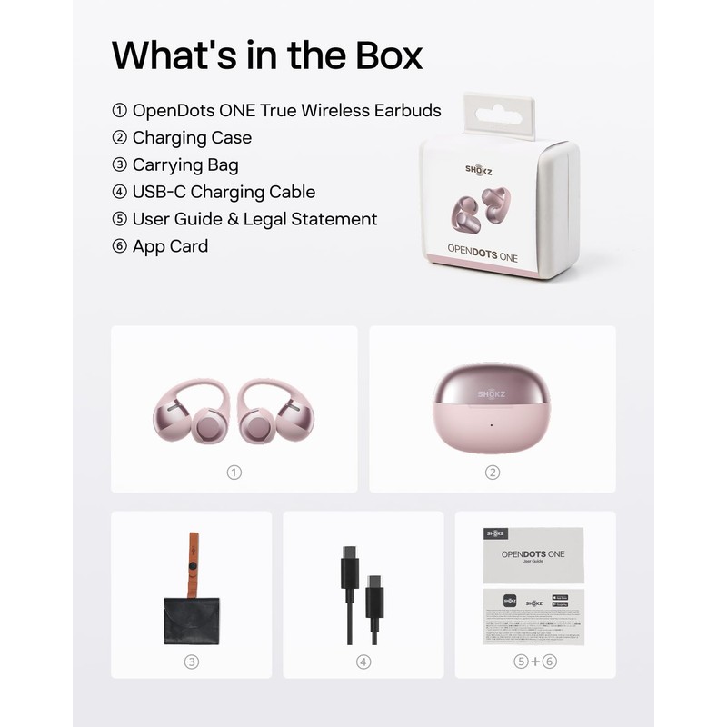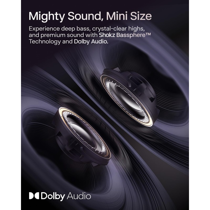 - Rich, Open-Ear Audio - Shokz signature open-ear design keeps you connected to the world while you experience the pocket-sized power of OpenDots ONE's premium Dolby Audio and Bassphere Technology.