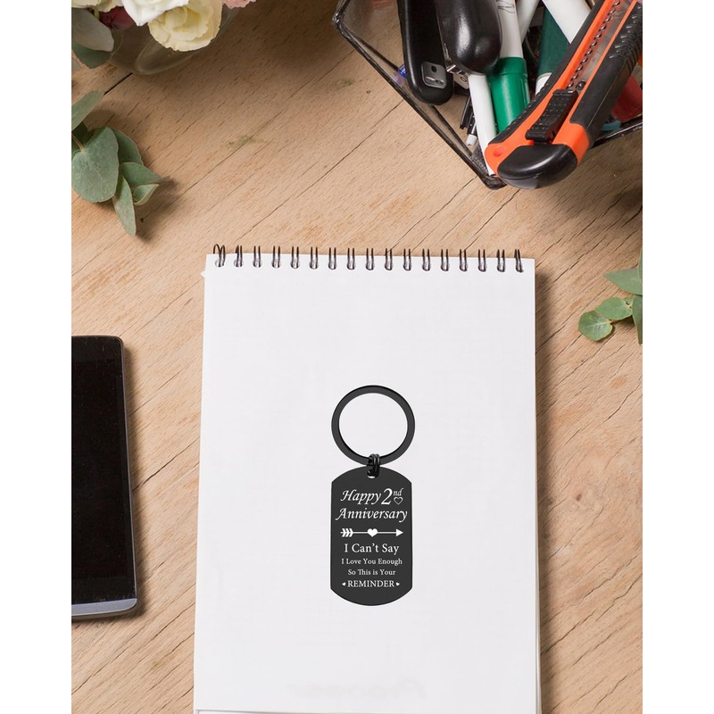 Shoneep Anniversary Engraved Keychain for Boyfriend & Husband, Anniversary Keychain Gifts for Him Her, Husband Wife, Couples, Black (2nd Annversary)