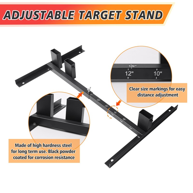 - 【Width Adjustable】 Durable powder-coated steel construction ensures great stability for our target stand, which measures 16.5 inches long x 8 inches - 24 inches wide and can accommodate various sizes of paper targets for shooting, providing flexibility for different shooting activities and target preferences
