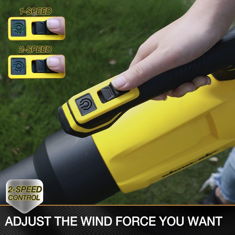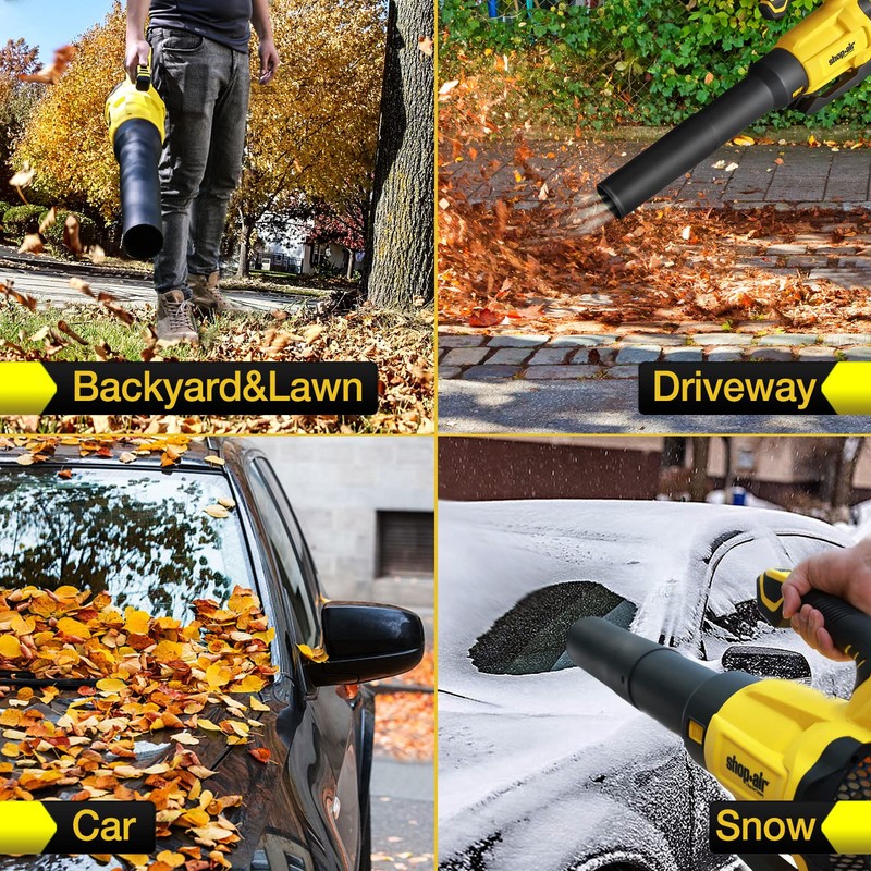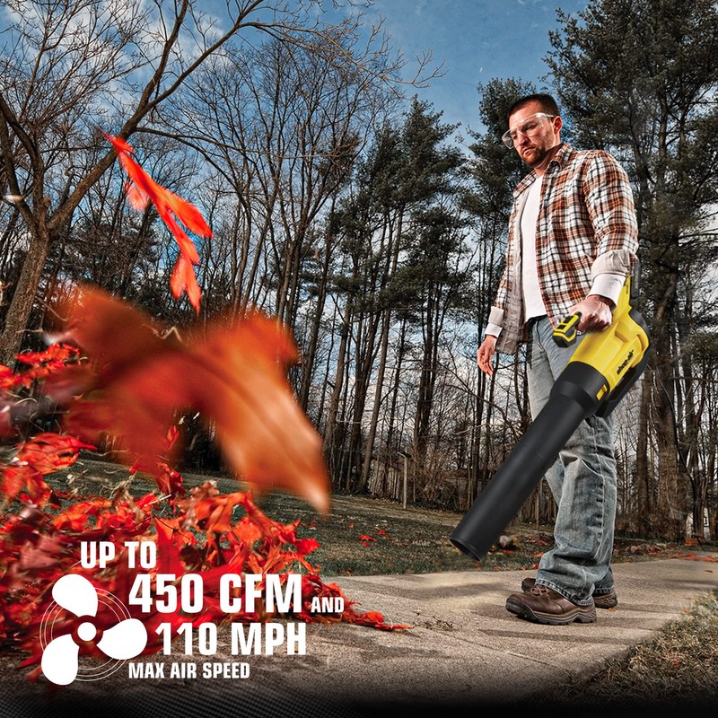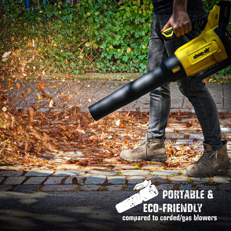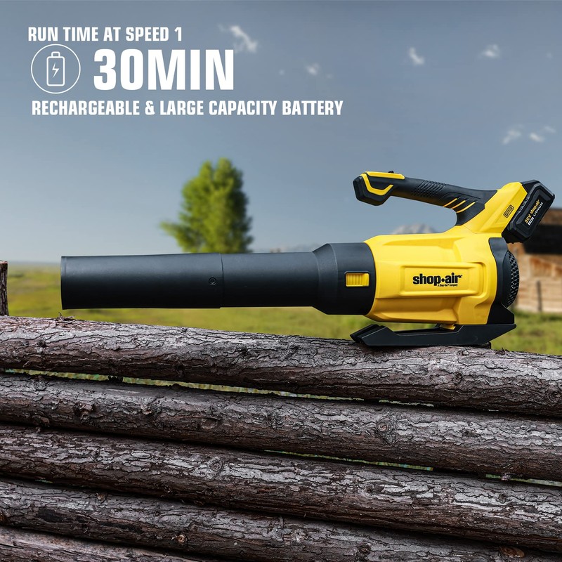 SHOP·AIR 20V Cordless Leaf Blower, 450CFM/110MPH Brushless Blower with Variable Speed, Lightweight for Lawn Care Snow Blowing Yard Cleaning, 4.0Ah Battery (Quick Charger Included)