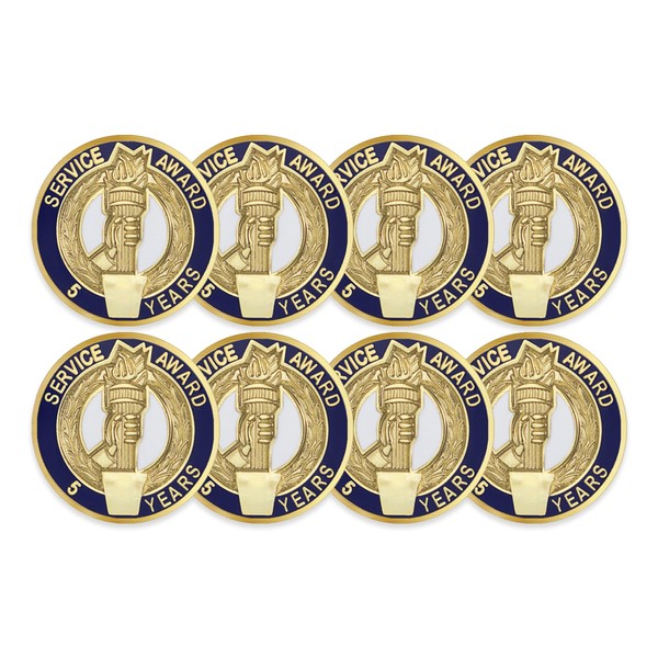 SHOP AWARDS AND GIFTS 5 Year Service Award Enamel Lapel Pins, Appreciation Employee Recognition Work Military Teacher Volunteer, Gift Boxed, 3/4 Inch, Pack of 8