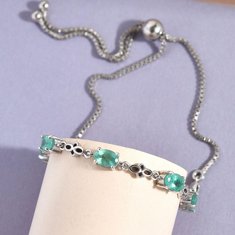 Shop LC Emerald Birthstone Bolo Bracelet for Women 925 Sterling Silver Green Wedding Jewelry for Bride Platinum Plated Adjustable Slider Chain Engagement Anniversary Wedding Promise Christmas Gifts