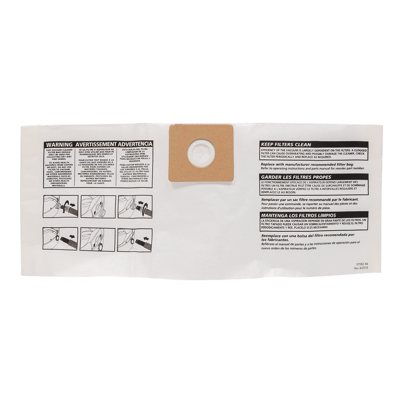 - These Shop-Vac Disposable Collection Filter Bags are constructed of "breathable" paper and come equipped with cardboard connector flaps