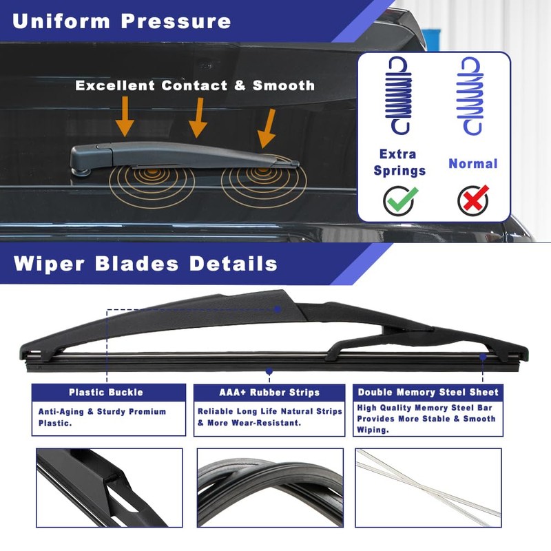 - Package Includes: Rear Wiper Arm x1, Wiper Blade x1, Wiper Cover x1 and Nut x1.