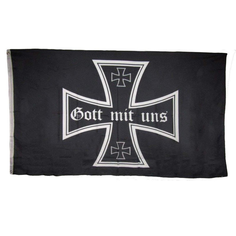 ShopForAllYou Decor Flags 3x5 German Iron Cross Gott Mit UNS Rough Tex Knitted Flag 3'x5' Banner