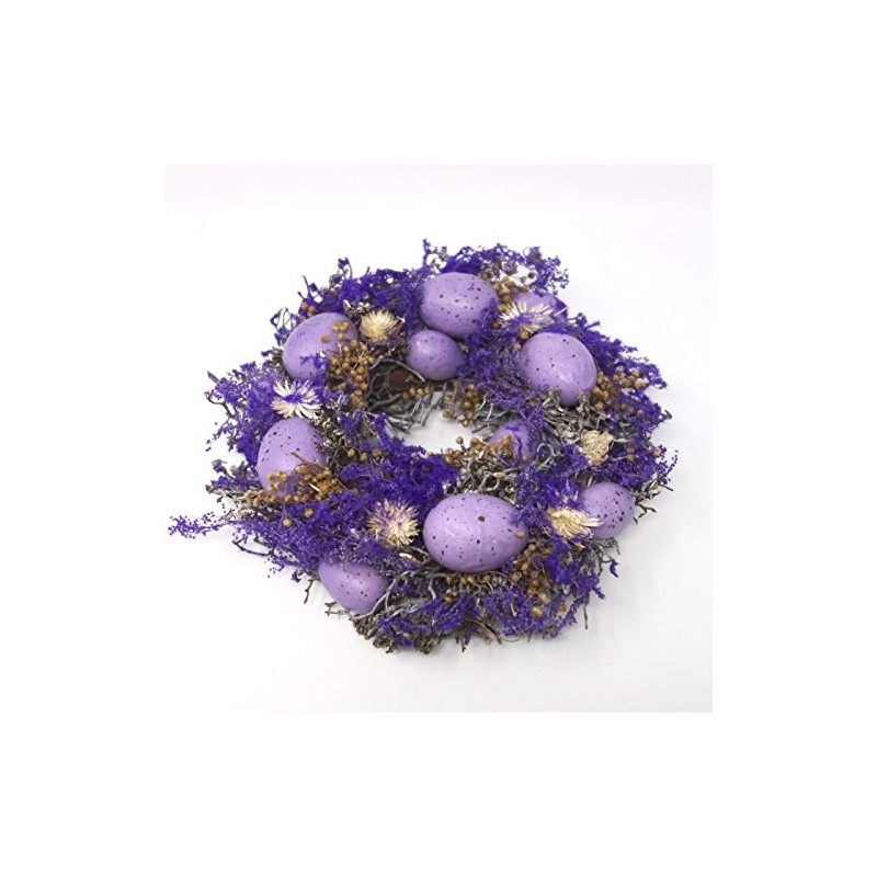- Purple wreath with eggs, Easter wreath. Colour: purple, natural. Size: thickness 6 cm, diameter 23 cm. Box contents: 1 item
