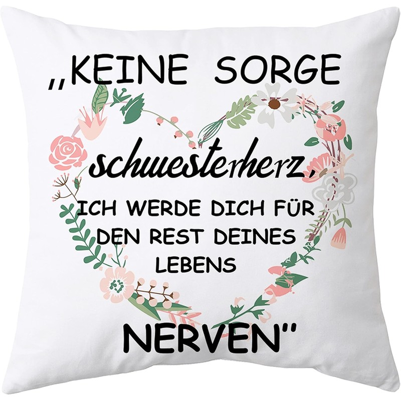 - Best sister gifts: The front of the cushion cover is printed: "Don't worry, sister heart. I will nerve you for the rest of your life". Interesting cushion cover, perfect gifts for sister.