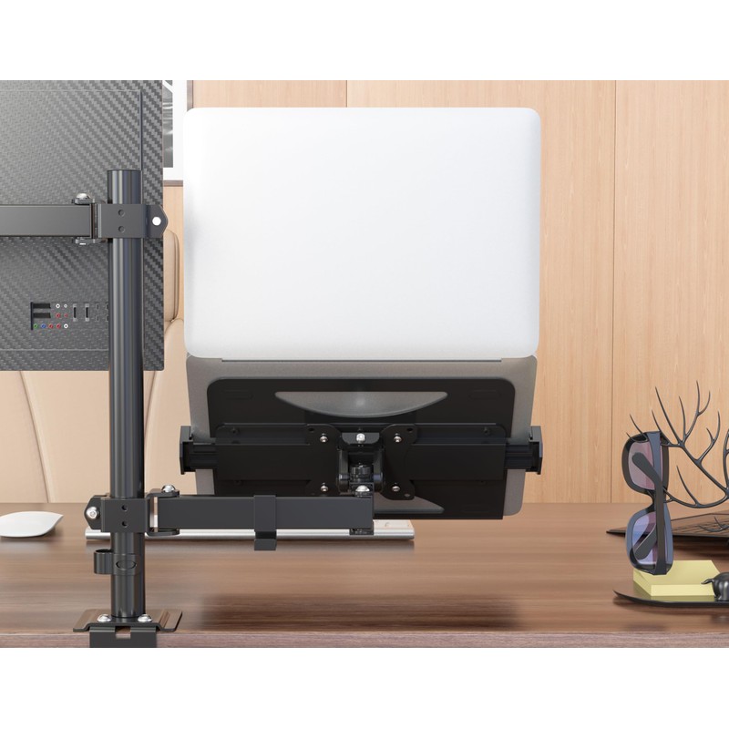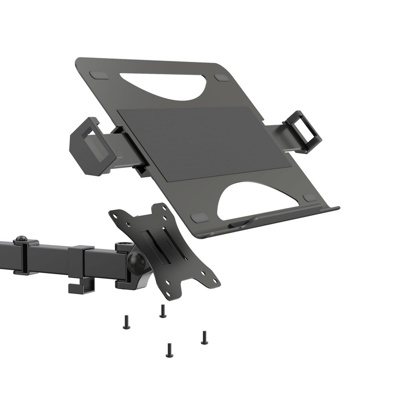 - [UNIVERSAL COMPATIBILITY] The tray holds 12" -17" laptops and is compatible with 75mm x 75mm or 100mm x 100mm VESA mounting holes.