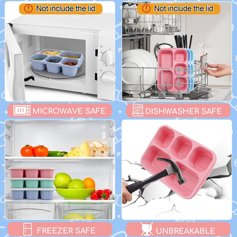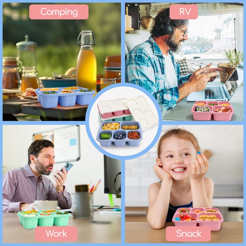 Shopwithgreen Bento Box Lunch Boxes, Snack Box Containers for Kids Adults, 5 Compartment Reusable Meal Prep Containers with Lids, 3 Pack