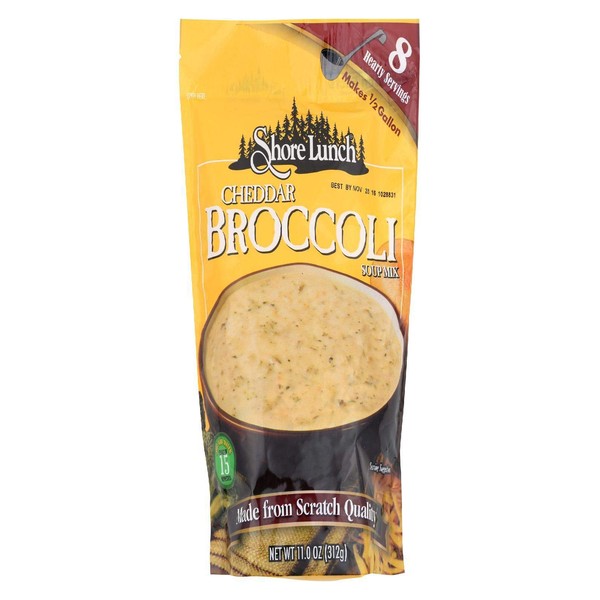 - Shore Lunch Cheddar Broccoli Soup is a chef-inspired blend of Cheddar cheese, broccoli and select seasonings that cooks up fast and delicious