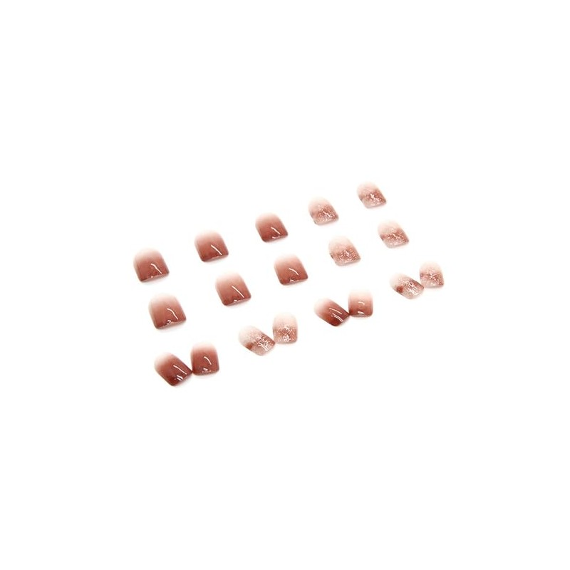 Short Almond Press on Nails with Solid Gel, Classical Style Dark Gradient Color Glossy False Nails 24pcs (Brown A1)