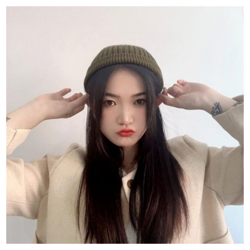 Short beanie (khaki) watch cap knit