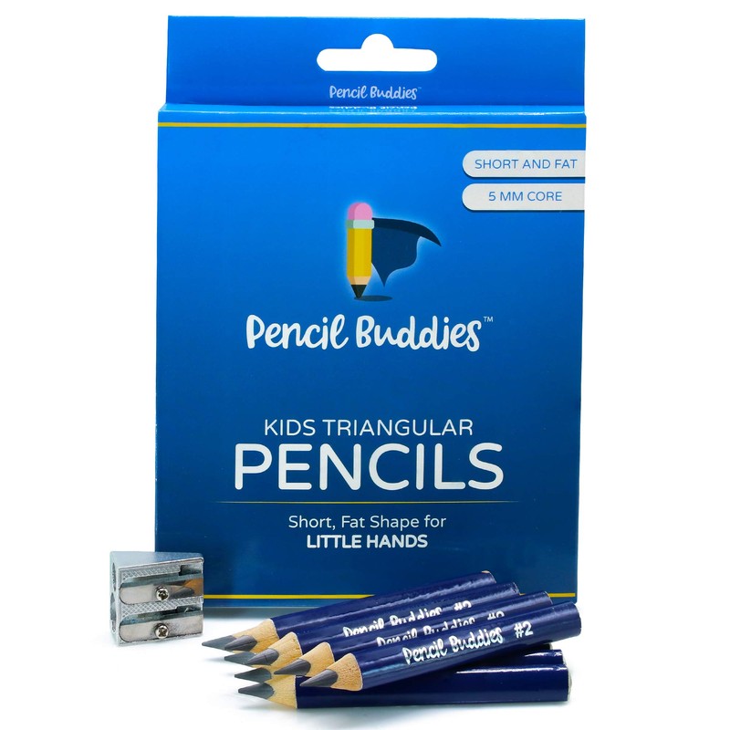 - IDEAL BEGINNER PENCILS – Designed to be easy to hold and manage for small hands, Pencil Buddies short and fat triangular pencils are perfect for early writers, preschoolers and kindergarten students learning to grip a pencil.