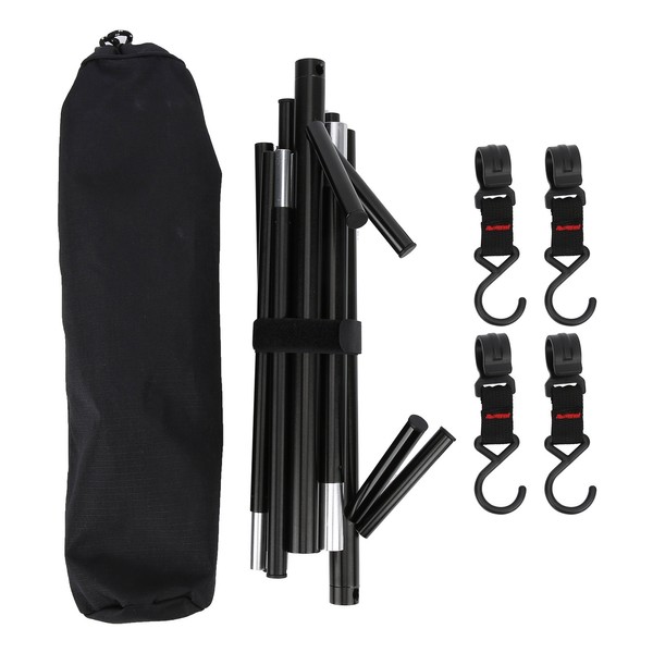 1、Made of high quality polyester, plastic steel and aluminum alloy material, firm and durable, provide longer service life. 2、Anodized surface, rust and wear resistance, effectively reduce the replacement. 3、Light in weight and compact in size, portable and easy to carry, will not occupy a large space. 4、Easy to install and operate, only need a few steps, effectively save your time. 5、Suitable for outdoor activities using, such as for camping, picnic, can hang cookware or cloth.