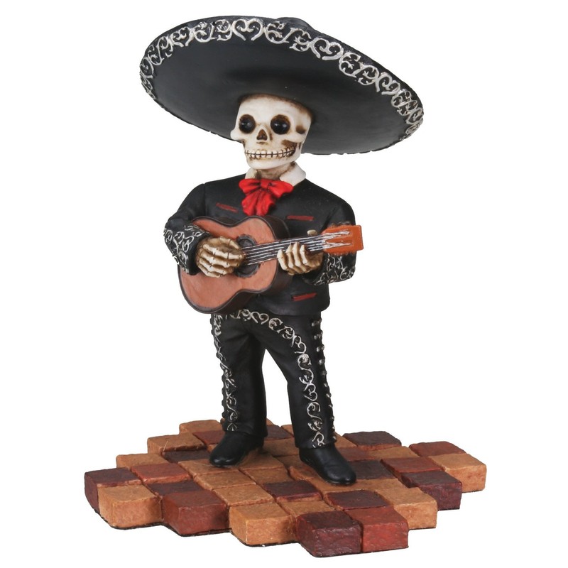 Short Skeleton Skull Black Mariachi Band Guitar Statue