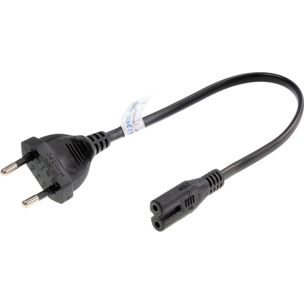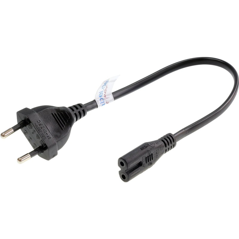 - Euro flat plug: type CEE 7/16, according to EN 50075, 250V/2.5A | Euro 8 socket: C7, according to EN 60320 | total length: 30 cm | visible cable length: 22 cm