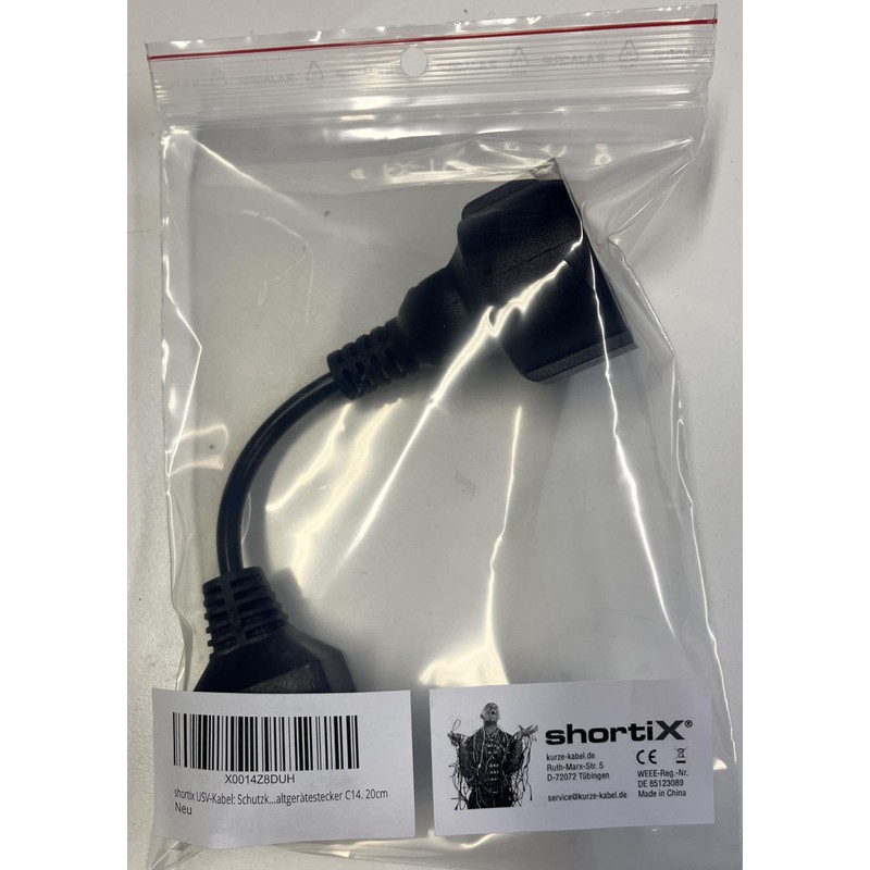 shortix UPS Cable: Earthing Contact Socket CEE 7/3 to IEC Plug C14. 20 cm