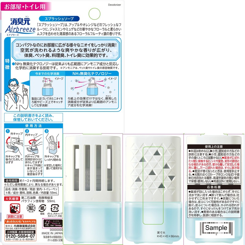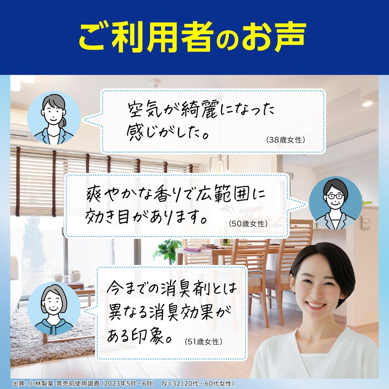 - Even though it is compact, it completely deodorizes various odors. It spreads a refreshing scent like the air is washed, and is effective for body odors, pet odors, cooking odors, and toilet odors. NH3 Odorless Technologology Plus reacts to ammonia ingredients that float in the air and deodorizes a chemical over a wide range than previous models. Compact type room toilets. A clean floral fruity fragrance. Lasts approximately 1 to 2 months (depending on usage environment)