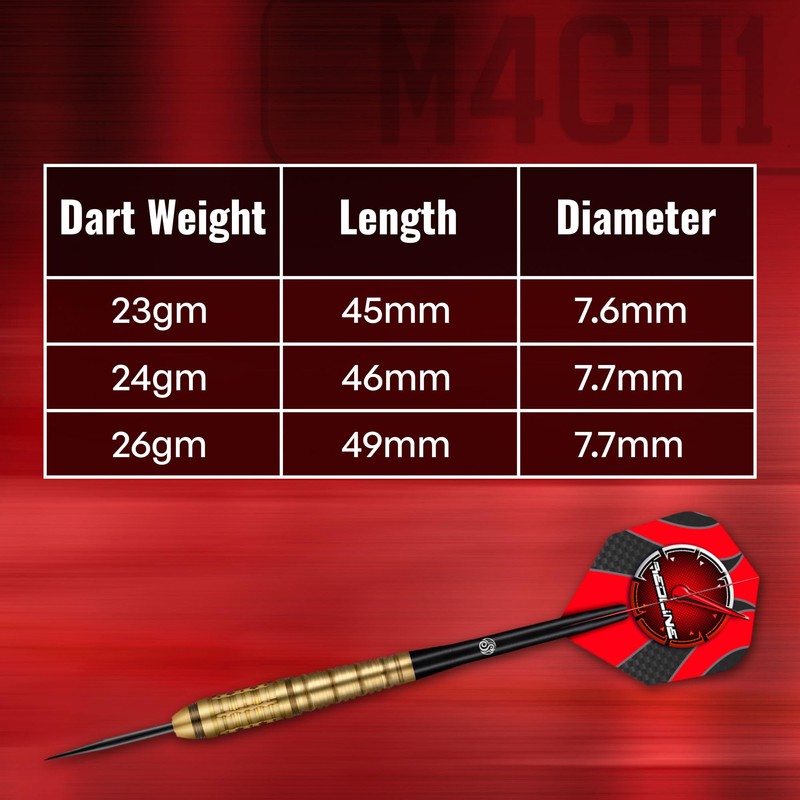 Shot! Darts Redline M4CH1 Steel Tip Dart Set Front Weighted 80% Tungsten Barrels (26, Grams)