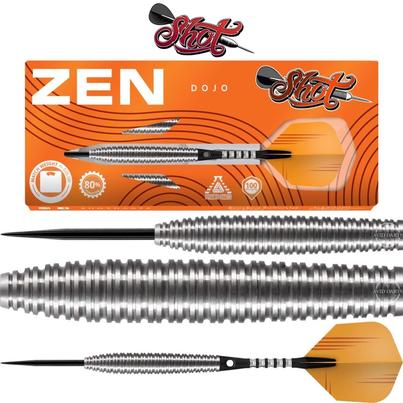 Shot! Darts Zen Dojo-Steel Tip Dart Set-Front Weighted-80% Tungsten Barrels (23)