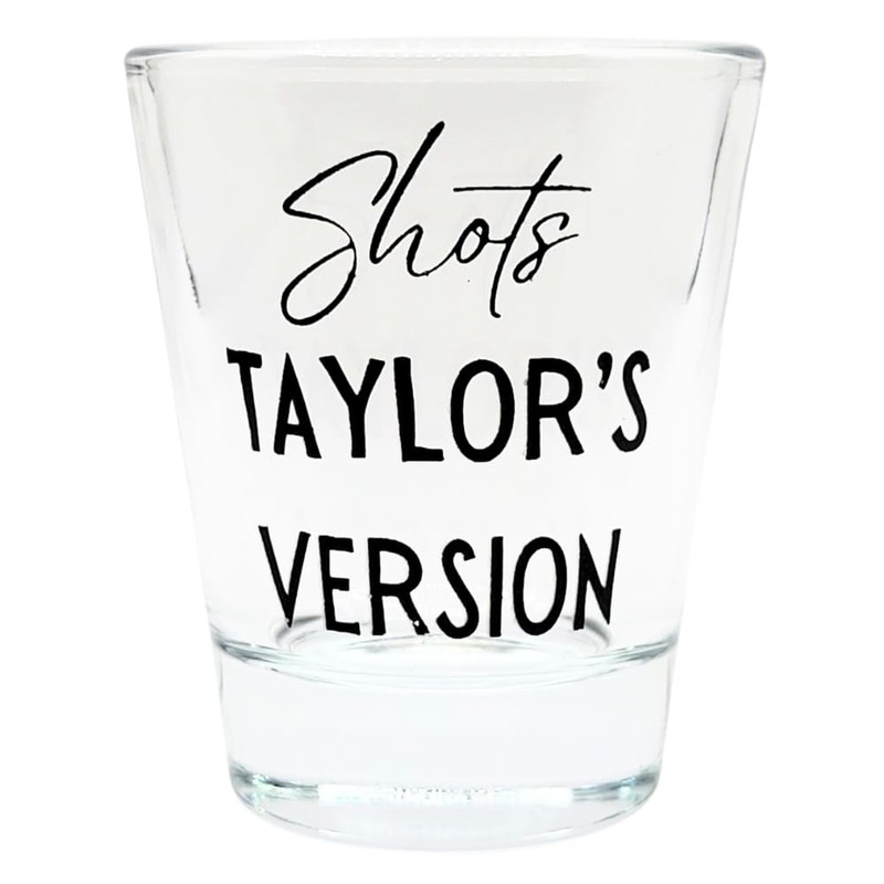Celebrate in style with this 1.75oz reusable shot glass, designed for fans of the popular singer who love to toast to every occasion! Featuring "Shots Taylor's Version" printed in bold black ink on the front, this clear glass adds a fun, personalized touch to your collection. Its sleek, minimalist design is perfect for parties, as a gift, or displaying alongside your favorite memorabilia. Whether you're raising a glass to your favorite singer's re-recordings or simply enjoying a drink with friends, this shot glass is a must-have for fans who want to sip in style.
