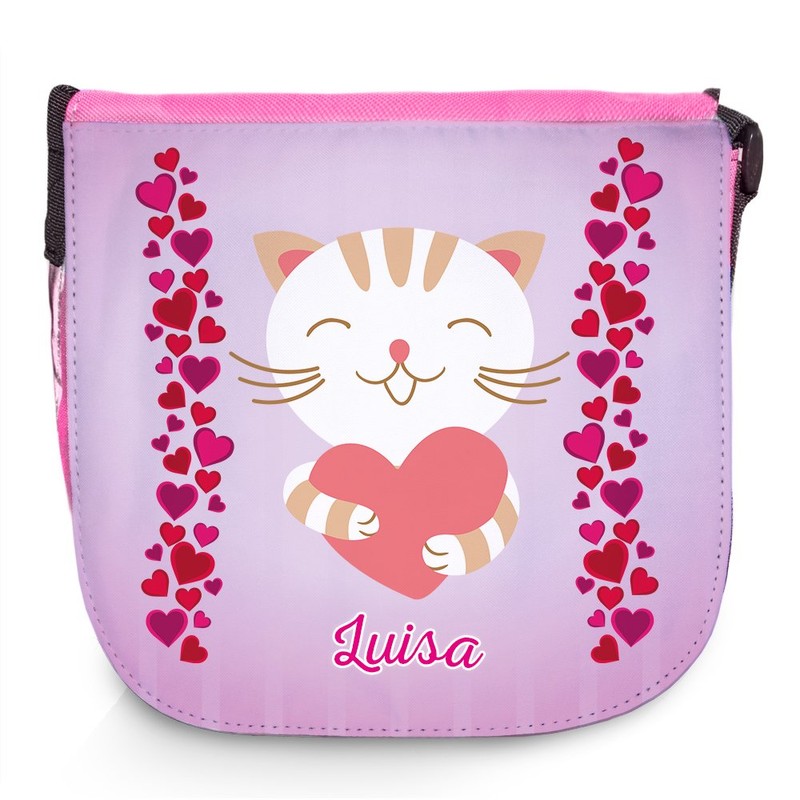 Shoulder Bag for kids with Name Luisa and Motif – Cat With Heart Design – Shoulder Bag for Girls