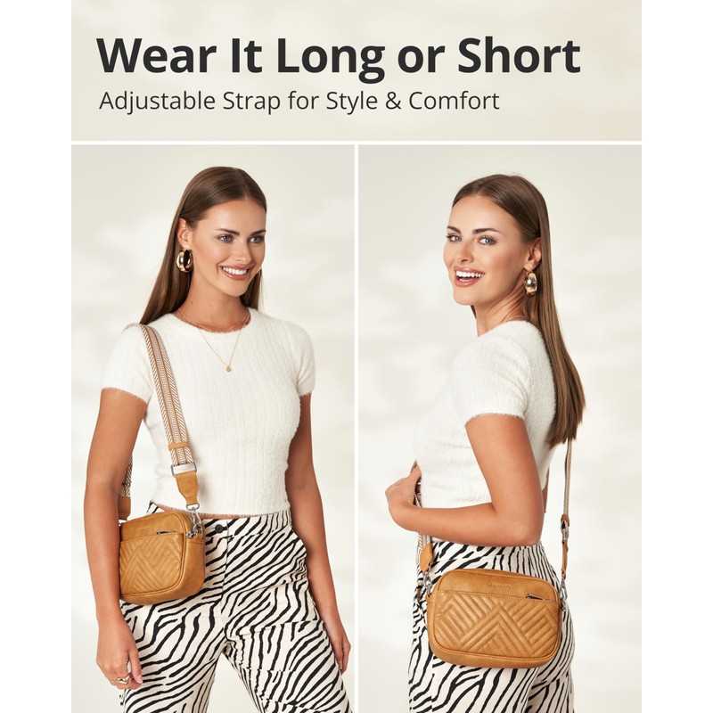 Vantamo Crossbody Bags For Women 29.5"-55" Jacquard Adjustable Strap, Extra Safe Purses for Women with RFID & Anti-Pickpocket Clip, PU Leather Shoulder Bag with Gift Box Included, Universal Tan Color
