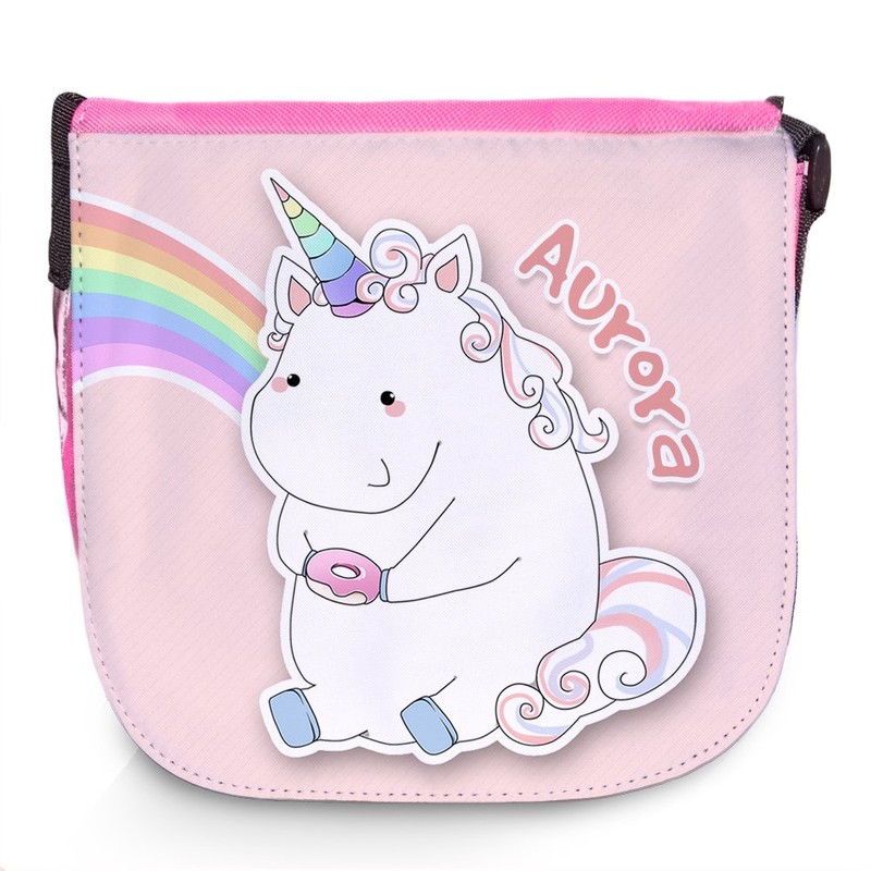 Shoulder Bag with name Aurora Unicorn Toy with Donut & Rainbow – Shoulder Bag for Girls
