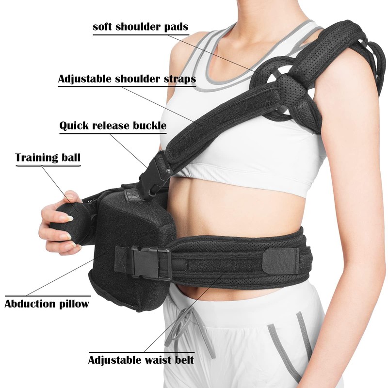 - Adjustable Straps for Universal Fit: This shoulder immobilizer sling is crafted with soft, breathable mesh materials. The multifunctional waist and shoulder straps feature a dual-opening design, adjustable to fit waists up to 39 inches, making it suitable for all body types. It can be used together with the abduction pillow or independently for left or right arm support.