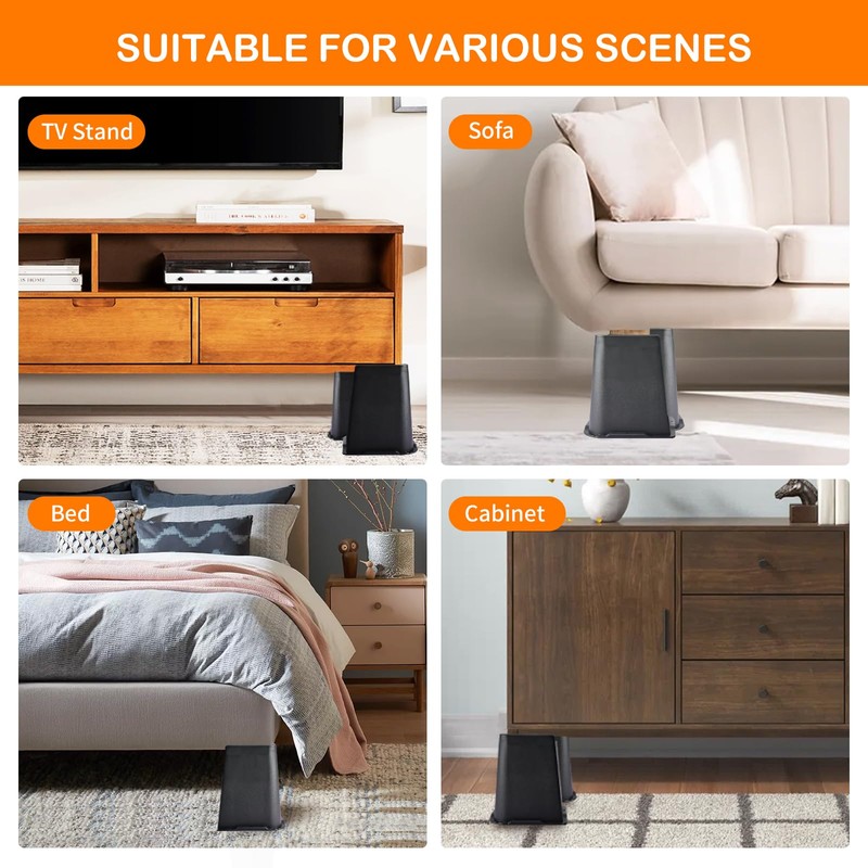 - 💯 【More Comfortable Life】Table risers not only give you more storage space under the bed, they also help with better sleep or for those who have back pain. Couch risers 8 inch heavy duty are perfect for raising the height of low furniture to assist in the process of moving from sitting to standing. This is a quick and easy solution to assist those with mobility issues to get up from the couch.