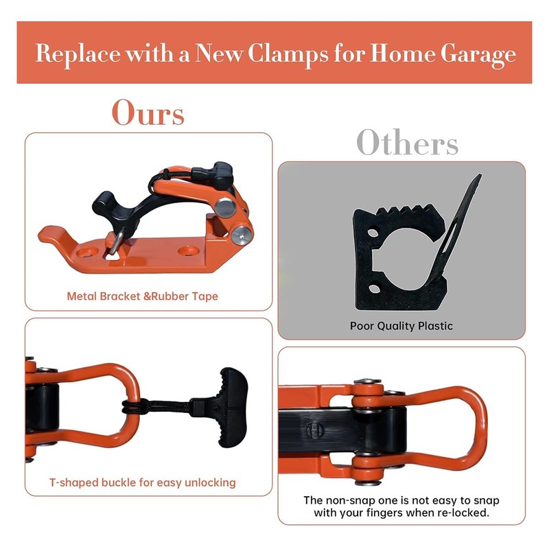 - Metal Rubber Clamps: Our shovel rack is crafted with sturdy metal support brackets and premium rubber buckles, offering excellent weight-bearing capacity.