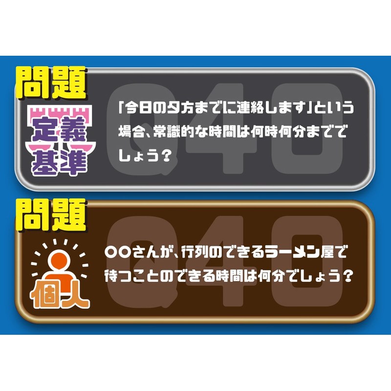 - セット内容:問題カード75枚(300問)、解答ボード10枚、イレイサー付きペン10本、得点カード70枚、説明書1冊