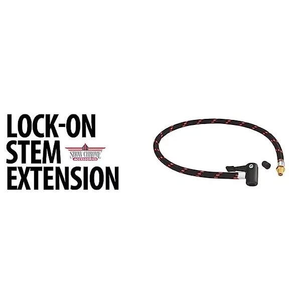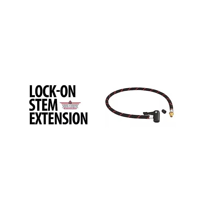 It can be frustrating to reach that hard to get to tire valve stem to get the air chuck on to check and add air. We have simplified this process with their Lock-On Valve Stem Extension. This convenient 24” flexible nylon air hose locks on with a snap to your tire valve stem extending access 24’’ allowing easy access for checking and filling any tire. This Lock-On Valve Stem Extension actually improves safety by making it easier to do routine pressure checks and fills. The braided nylon hose is durable for years of use. Designed for convenience with a 24” long nylon air hose with a universal lock on stem connection.