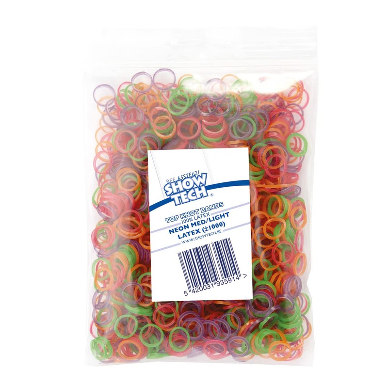Show Tech Latex Top Knot Bands Medium, Your Dog Grooming Expert, Perfect for showdogs, will not to damage the coat, Neon 1000 pcs