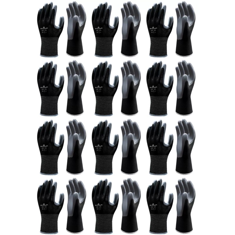 Showa Atlas 370B BLACK Nitrile Palm Coated GARDENING WORK GLOVES 12 PR MEDIUM