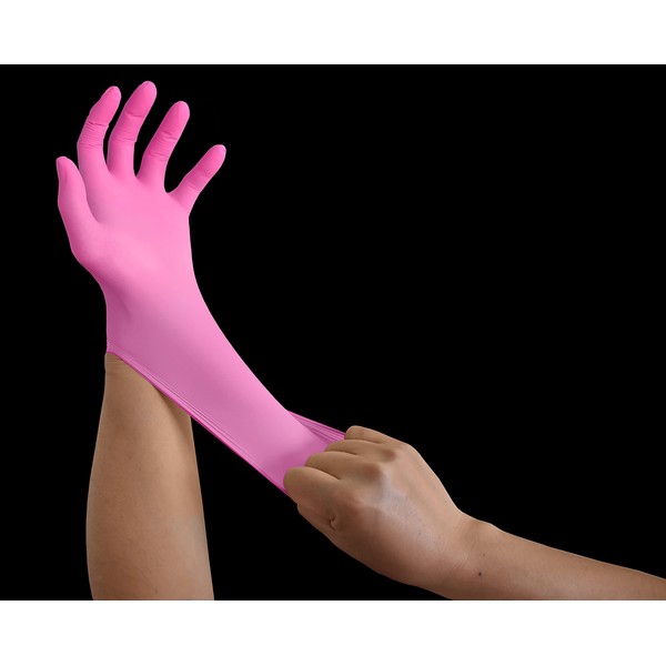 - Thickness is about 0.08mm Pink nitrile rubber gloves to match your work