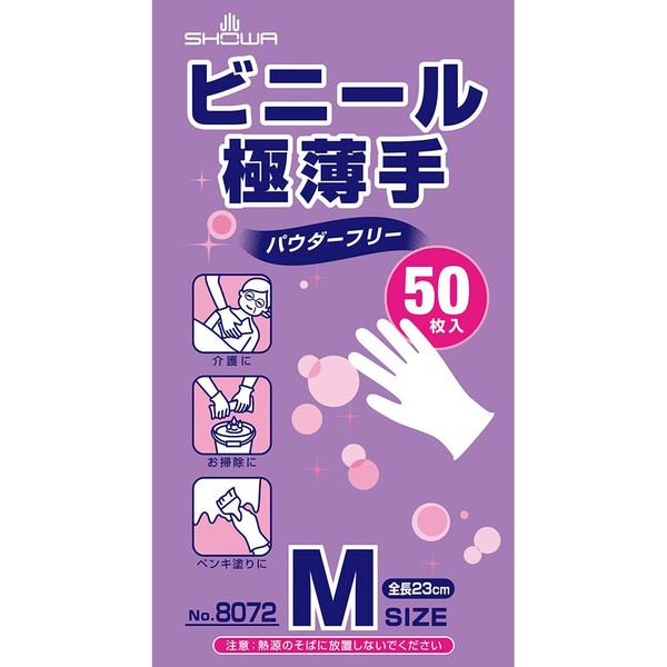 Showa Gloves No.8072 Ultra Thin Vinyl Gloves, 50 Pieces, Medium Size, 1 Box