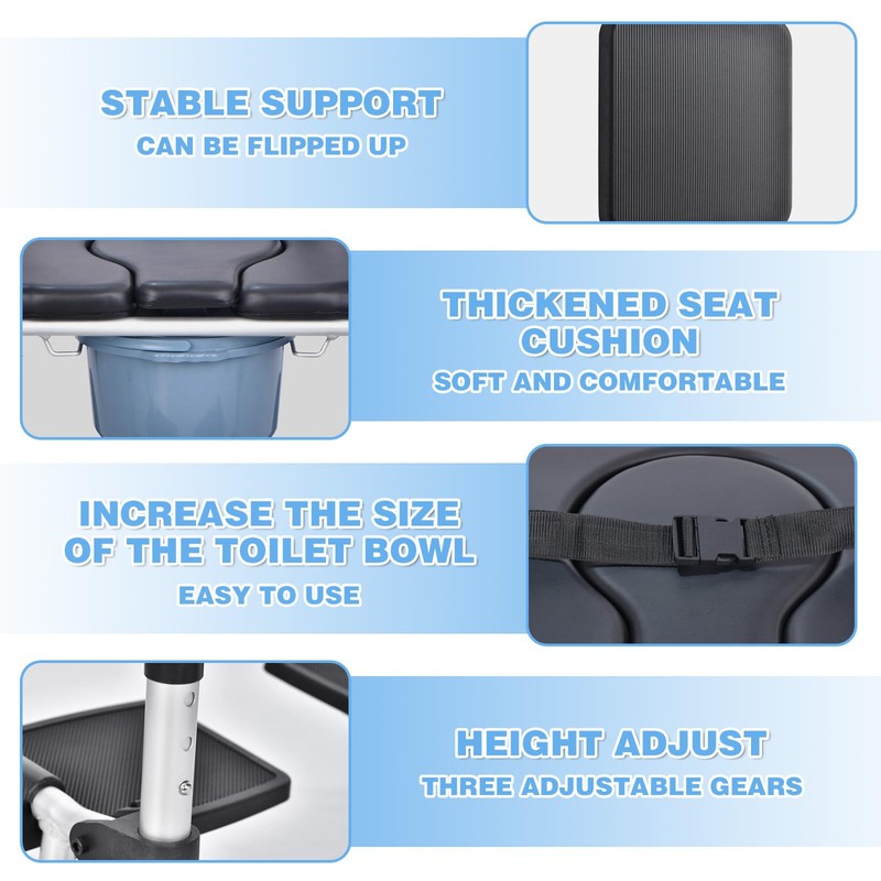 - 【Thoughtful Design]】This bathing wheelchair has a removable upholstery hole in the middle of the seat cushion. And there is a removable large-capacity commode under the seat cushion, which is extended and deepened to 14.56in long, and can be pulled out from the front and back, or lifted from above after lifting the seat, making it easy for the elderly and patients to urinate and defecate. Comes with a toilet brush, easy to clean the potty.