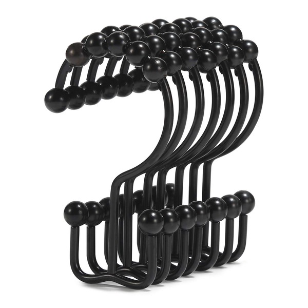 Shower Curtain Hooks, Goowin Shower Curtain Rings, Stainless Steel Black Shower Curtain Hooks, Shower Curtain Rings Rust Proof, Free Sliding Double Shower Hooks for Shower Curtain & Liners (Black)