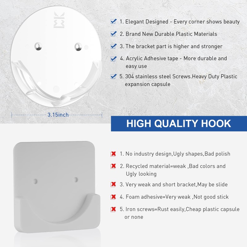 - Easy to Install: Come with very sticky adhesive pads. Just need to peel off the protection films and stick on the walls. Or use 304 stainless steel screws plus durable expansion nail for permanent installation