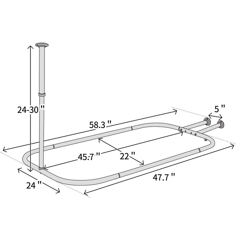 - 【HOOP DESIGN DIMENSION】: Size of the oval shower rod is 58.3 inch (Overrall Length)x 24inch(Width)x24-30 inch (Adjustable ceiling support),suitable for most bathtubs especially for free standing tubs.