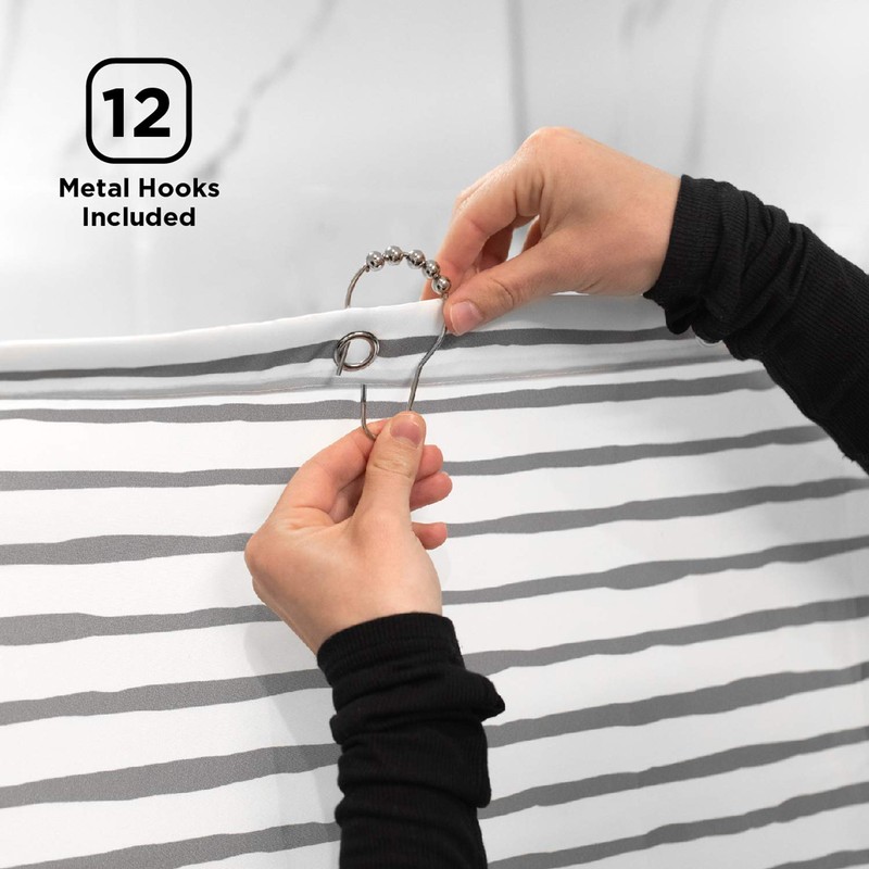 - Your Complete Shower Curtain Set - This luxury shower curtain set includes 12 sturdy metal hooks specially designed to fit the shower curtain’s aesthetic. They’re resistant to rust and can withstand wear and tear.