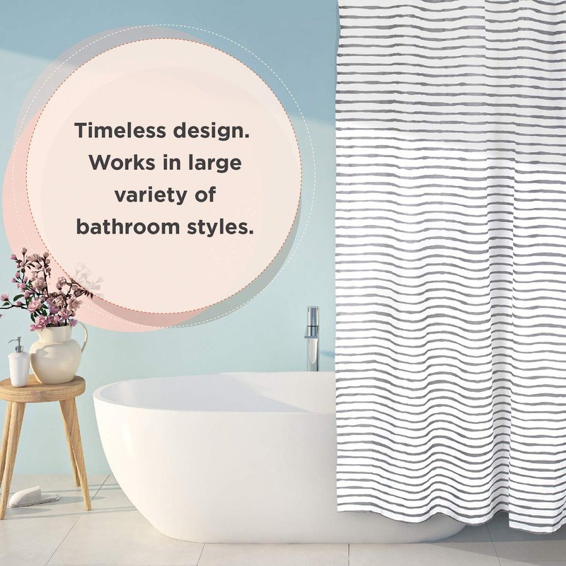 - Keep Your Bathroom Floors Dry - Tired of sopping wet floors when you shower? Made of water-resistant polyester, our modern shower curtains are specially tailored to fit standard bathtubs and effectively stop water from splashing onto your bathroom floor.