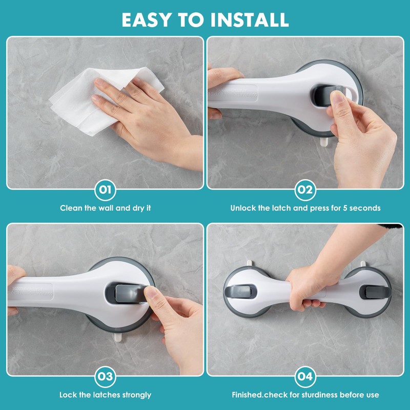 - 【Easy Installation】Considering how inconvenient it could be to waste long time on installation. LPHGFZA Shower Stool needs No drilling, no glue, no nails, no tool! Just clean the wall, press the suction grab bar on the wall for 5 seconds and lock latches then it’s done! Not only it’s quick and easy installation, but also removable and reusable. Release the latches to remove it then easily clean it with water, and you can reinstall it again. (Press suction for 5 seconds BEFORE locking latches)