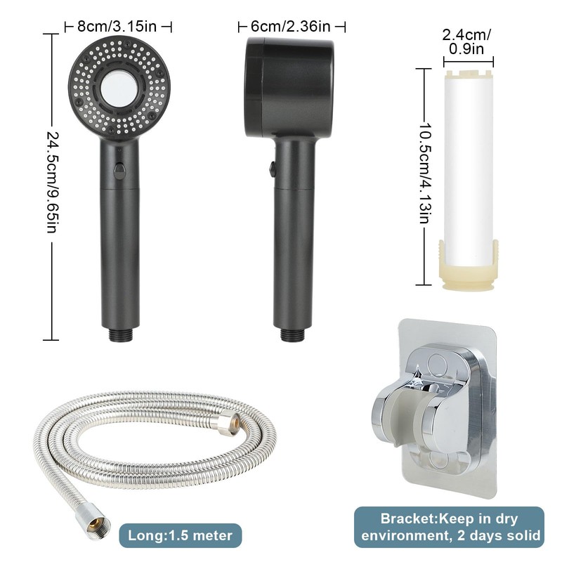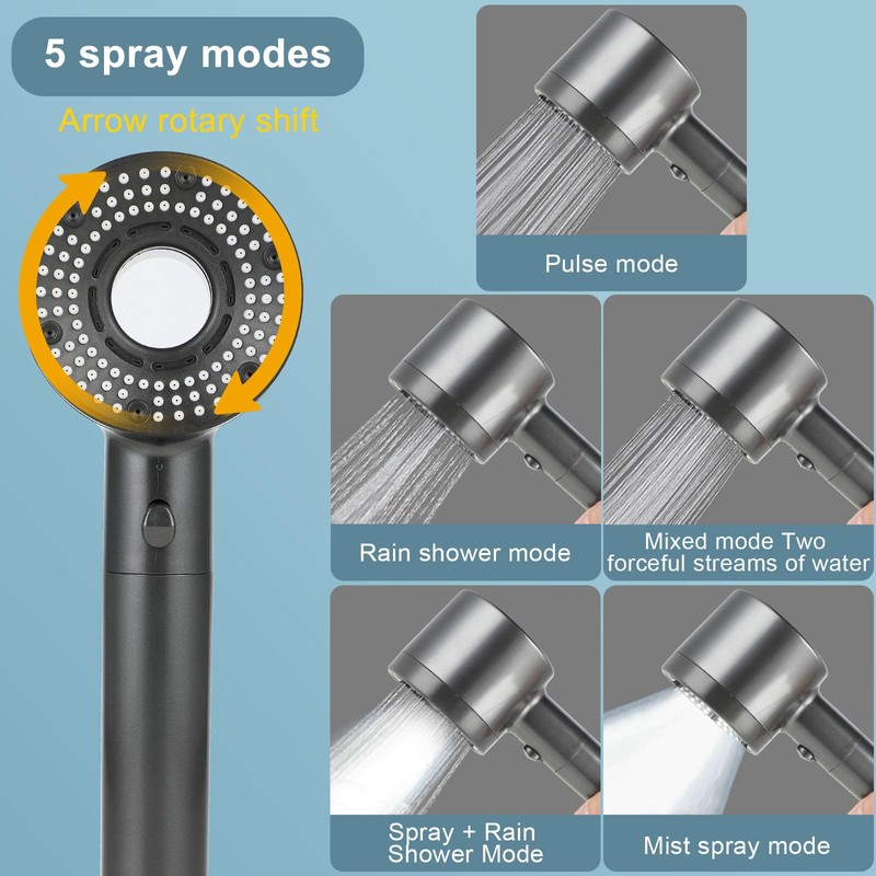 Shower Head Hard Water Filter Shower Head with 1.5M Shower Hose and Shower Stand,Filter Cartridge, 5 Mode Handheld Pressurized Shower Head High Pressure Shower Head with Atomizer SPA Mode